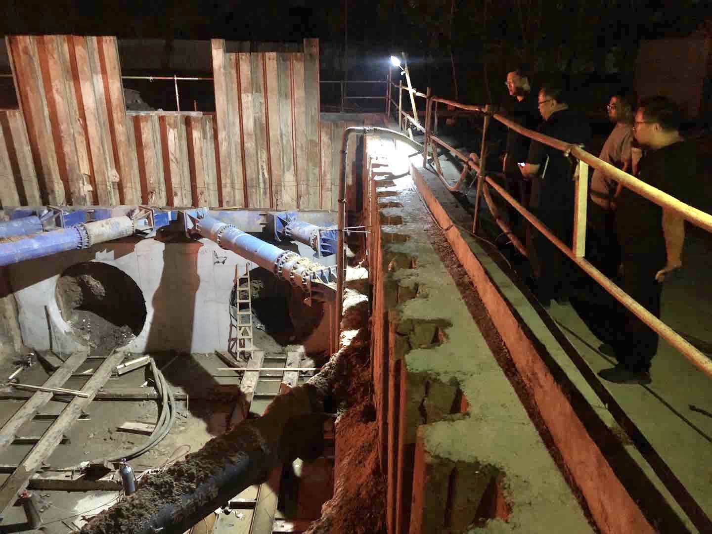 李聲播要求,一是施工單位必須做好開工前施工現(xiàn)場的安全隱患排查工作及作業(yè)人員的安全教育工作,確保每位作業(yè)人員始終安全著裝,特別是在交叉作業(yè)、機(jī)械吊裝、基坑底部作業(yè)防絆倒、臨時安全用電、夜間施工及24小時作業(yè)等方面,抓實(shí)抓好隱患排查采取有效的防范措施。二是DN2400大口徑鉆探機(jī)的設(shè)備檢查、運(yùn)行調(diào)試、注漿管防破裂等工作要落實(shí)到位,頂進(jìn)前必須排除隱患問題,形成切實(shí)有效的防范措施預(yù)案。
